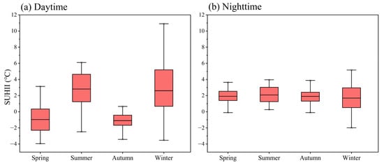 3.1. Seasonal and Diurnal Characteristics of the SUHI