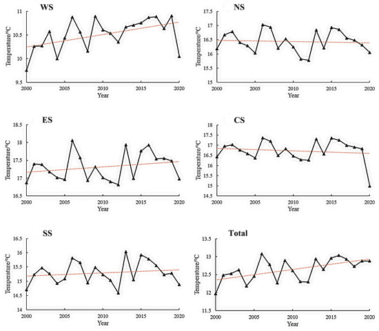Temporal changes in temperature of Sichuan Province during 2000–2020.