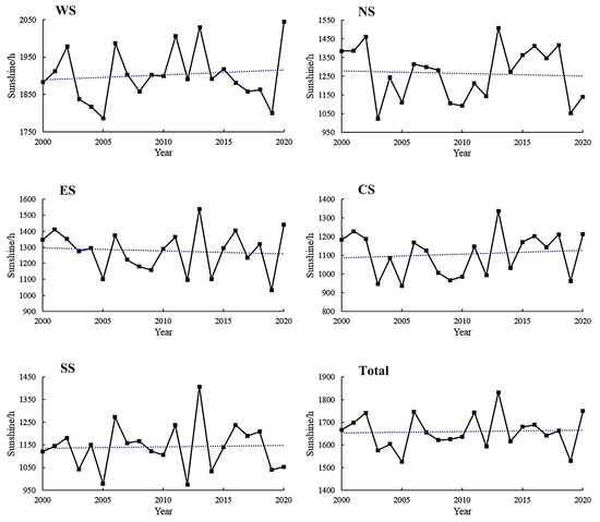 Temporal changes in sunshine duration of Sichuan Province during 2000–2020.