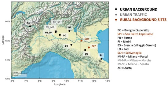 This study was supported by the National Recovery and Resilience Plan (NRRP), Mission 04 Component 2 Investment 1.5—NextGenerationEU, call for tender n. 3277 dated 30/12/2021. Award Number: 0001052 dated 23/06/2022 (ECS_00000033_ECOSISTER). The authors gratefully thank the personnel of the Regional Environmental Protection Agencies (ARPAs) of Emilia-Romagna (D. Bacco, A. Trentini and V. Poluzzi of the Centro Tematico Regionale Qualità dell’Aria at Bologna), Lombardia (Cristina Colombi of the UO Qualità dell’Aria in Milan) and Valle d’Aosta (M. Zublena, T. Magri, I. Tombolato, and H. Diémoz of the Sezione Aria, atmosfera e pressioni sull’ambiente at Aosta).