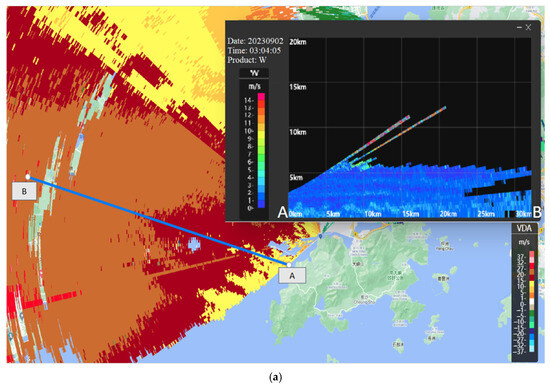 In the two cases discussed in the present paper, the cross-mountain airflow was brought about by south-to-southeasterly winds associated with tropical cyclones to the southwest of Hong Kong. The first case was observed by the SLW radar and was related to Super Typhoon Saola that just passed Hong Kong in the morning of 2 September 2023. An account of Saola could be found in, e.g., [13]. The synoptic chart at the time of observation can be found in Figure 1a.