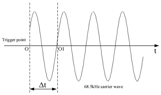 The signal is triggered at O point, O1 is the first zero crossing point, the time interval between O and O1 is Δt, and the carrier period is T, then the carrier phase is defined as: