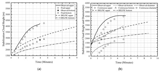 Therefore, when t0 and A0 were taken as the values one minute after the bursts of Equation (31), the total activity of the BUSTER-JANGLE-Sugar test (RANGER-Able) with a fission equivalent of 1.2 (1) kiloton at the time point of post-burst 4.32 (3.95) min of the observed stabilization cloud can be calculated based on Equations (29)–(31). The theoretical activity values of the fission products in the stabilization clouds are 8.9482 × 1020 (9.9635 × 1020) Bq, respectively.