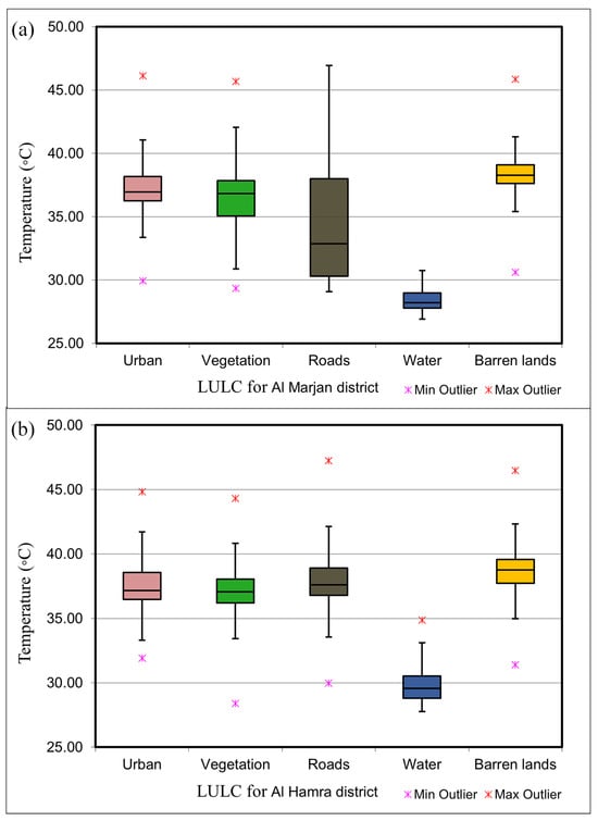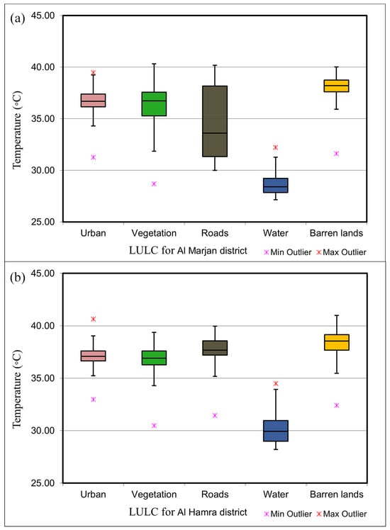 | Land Cover | Min. (°C) | Mean (°C) | Max. (°C) | Median (°C) | S.D. (°C) | |
