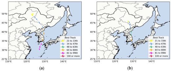 3.1. Comparison of Typhoon Tracks, Intensity