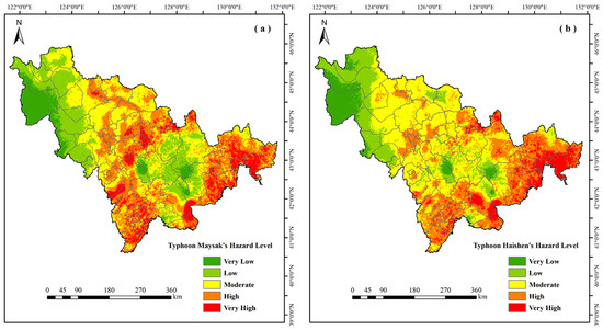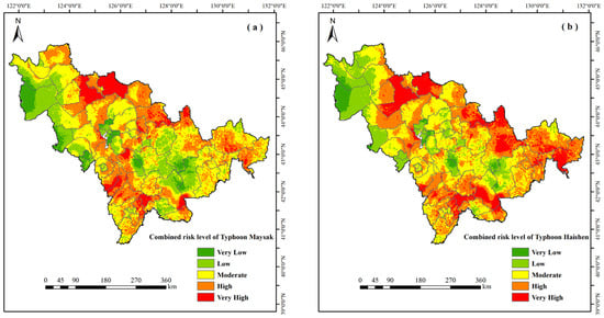 - Considering the four dimensions of disaster risk, we can draw the following conclusions. When conducting a hazard assessment for Typhoons Maysak and Haishen, it is clear that the regions most at risk are the eastern, southern, and central sectors of Jilin Province. Typhoon Maysak’s high-risk zones cover a substantial 46% of the province’s expanse, whereas Haishen’s high-risk and above zones take up a considerable 39% of the province’s total area. In general, the hazard level associated with Typhoon Maysak is marginally greater than that of Typhoon Haishen. In the analysis of exposure, regions at high risk for typhoon disasters account for 16% of Jilin Province’s total area. This risk is particularly concentrated in the three economically thriving cities of Changchun, Jilin, and Baishan, as well as large agricultural counties such as Songyuan, Nongan, and Yushu. In terms of vulnerability assessment, regions classified as high risk account for 54% of the entire area of Jilin Province when it comes to typhoon disasters. The high-vulnerability areas are predominantly distributed in Yushu, Nong’an, and Songyuan (excluding Qian’an). In terms of emergency response and recovery capability analysis, Changchun, the Jilin Province’s capital, boasts a notably robust capacity for typhoon disaster preparedness and relief.