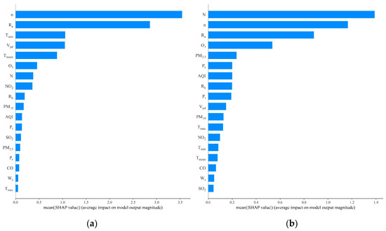 Mean absolute SHAP value of the stacking model in Beijing: (a) (Rs); (b) (Rd).