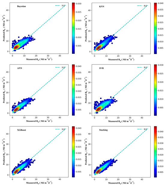 Scatter density plot of different models in estimating Rd.