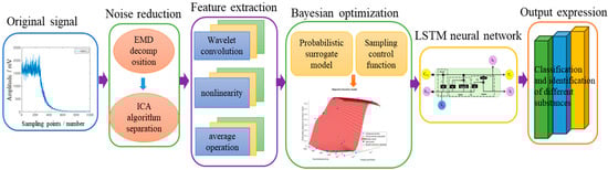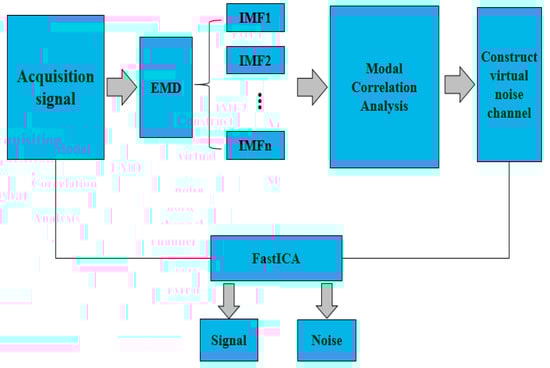 Figure 5, the inherent mode function (IMF), decomposed from EMD, was used to construct a virtual noise channel as the input matrix of ICA through modal correlation analysis. It effectively resolved the mode aliasing issue of EMD and enabled the separation of single-channel data signals from noise signals by ICA. Thus, the characteristics of the signal after noise reduction were analyzed accurately [