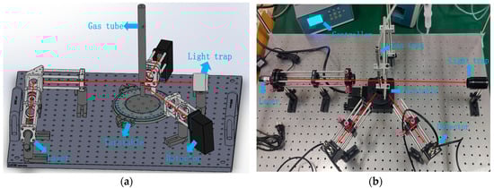 Figure 3, the system consisted of four parts, including a light source, detection module, light trap, and gas path. This platform selected a semiconductor laser as the incident light source with an output wavelength of 650 nm. The photodetectors on this platform were the PDA100A2 photodetectors from Thorlabs.