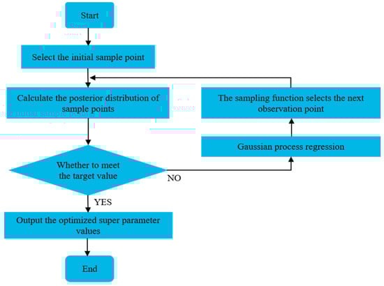 xb denotes the point at which the posterior distribution of the objective function is expected to be optimal, and m denotes the coefficient to measure exploration and utilization. The flow chart of Bayesian Optimization is shown in