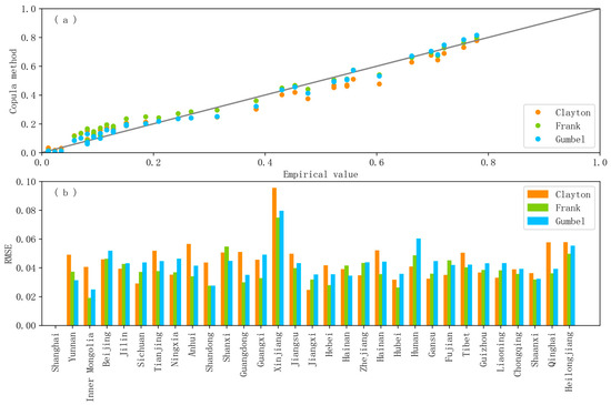 The fit effect of the copula function: (a) Heilongjiang Province; (b) RMSE.