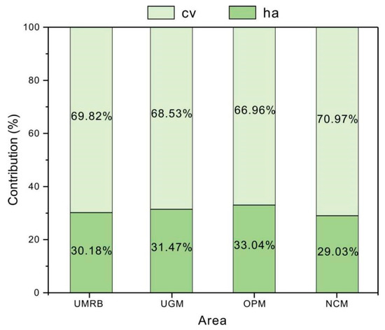 Contributions of CV and HAs to NPP changes in different areas of UMRB from 1987 to 2022.
