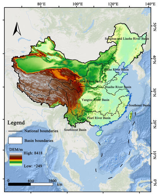 Elevation distribution map of river basins in China.