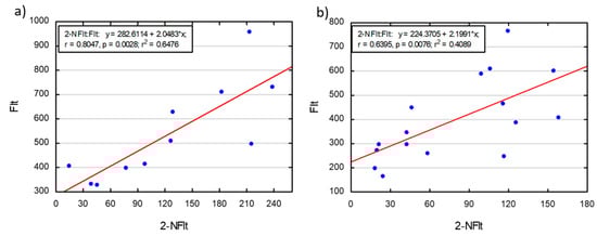 Flt vs. 2-NFlt in CUE. (a) Warm-dry and (b) Rainy seasons.