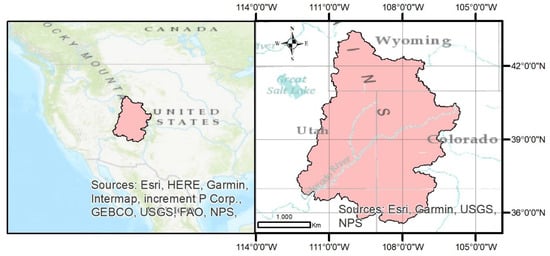 Drought prediction in the UCRB is of interest to the researchers. Mohsin and Pilz (2021) [22] reported a reliable forecast of the interarrival time of drought by using explicit distribution based on the convolution of stochastic variables derived from the Bivariate Affine-Linear Exponential (BALE) distribution. Madadgar and Moradkhani (2013) [23] used the standardized streamflow index [24] in a multivariate probabilistic framework to forecast spring flow (April–June) as a representative of hydrologic droughts with different severities in the UCRB. The spring flow showed higher correlations with the previous winter (January–March) than with fall (October–December). Two major predictors, teleconnection indices and landscape variables, have been used for drought prediction in the UCRB. Teleconnection–drought relationships are not highly correlated for the UCRB compared with the southern portion of the Colorado River Basin [25]. Conversely, applying landscape variables (e.g., precipitation, percent snow, potential evapotranspiration, soils, and drainage area) for predicting low flow metrics has been more successful [6].