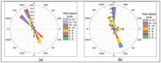 The 3-day wind rose plots of the first dust storm (a) and the second dust storm (b).