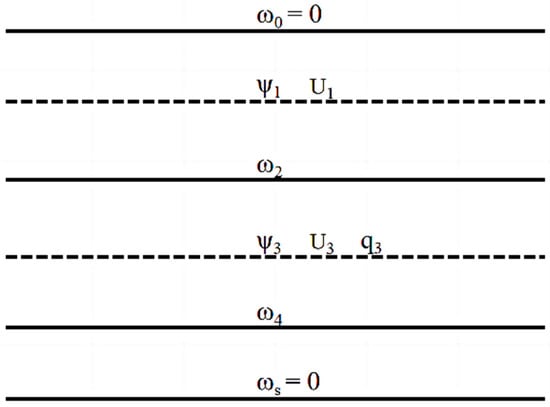 A 2.5-layer theoretical model was constructed to understand the origin of instability of the synoptic disturbances over the SASM region. This model is an extension of the classic QG two-level model of Phillips (1954) [] by adding a prognostic lower-tropospheric moisture equation and an interactive PBL with Ekman-pumping-induced vertical moisture advection.