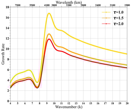 Figure 12 shows the sensitivity result of growth rates for given three different convective adjustment time values. As expected, the growth rate decreases as the adjustment time increases. Thus, the current MVI derives an opposite sensitivity of the growth rate to the adjustment time compared to that of Adames (2021) [].