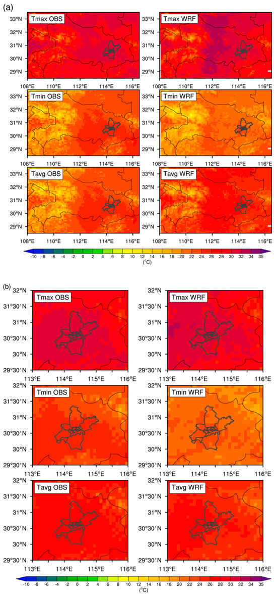 The authors would like to thank Werner at NCAR for her helpful advice on various technical issues relative to WRF simulation. The authors acknowledge support of Hubei Meteorological Service and China Meteorological Administration (CMA) for providing daily gridded and station meteorological datasets. All the simulations described in this study were carried out with the facilities of the Center for High Performance Computing at Wuhan University.