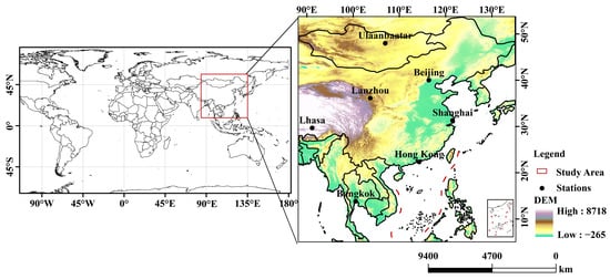 | Stations | Longitude (°E) | Latitude (°N) | Elevation (m) | Population (Million) | Climatic Zones |