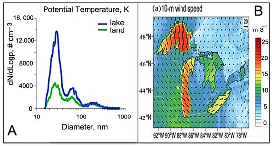 - Slade, J.H.; VanReken, T.M.; Mwaniki, G.R.; Bertman, S.; Stirm, B.; Shepson, P.B. Aerosol production from the surface of the Great Lakes. Geophys. Res. Lett. 2010, 37, L18807. [Google Scholar] [CrossRef]
