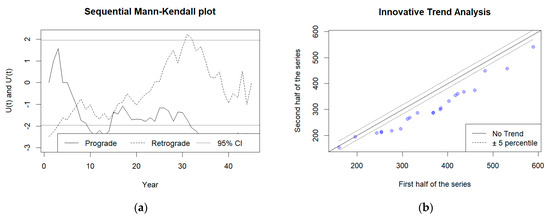 - Mann, H.B. Nonparametric Tests against Trend. Econom. J. Econom. Soc. 1945, 13, 245–259. [Google Scholar]