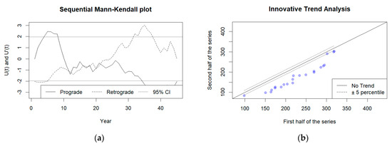 - Caloiero, T.; Coscarelli, R.; Ferrari, E. Application of the Innovative Trend Analysis Method for the Trend Analysis of Rainfall Anomalies in Southern Italy. Water Resour. Manag. 2018, 32, 4971–4983. [Google Scholar] [CrossRef]