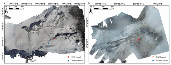 - Che, Y.; Wang, S.; Liu, J. Application of unmanned aerial vehicle (UAV) in the glacier region with complex terrain: A case study in Baishui River Glacier No. 1 located in the Yulong Snow Mountains. J. Glaciol. Geocryol. 2019, 41, 1–9. [Google Scholar]