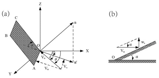 Vertical velocity calculation schematic for the slope surface (a) and sectional view (b).