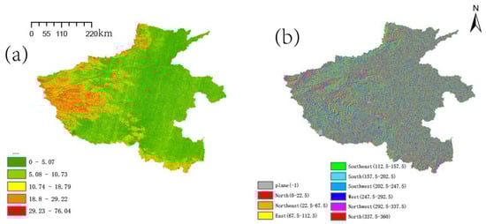 Spatial distribution of slope (a) and aspect (b) in Henan Province.