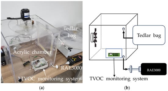 (a) Experimental setup and (b) schematic view of TVOC monitoring system with a portable VOC detector.