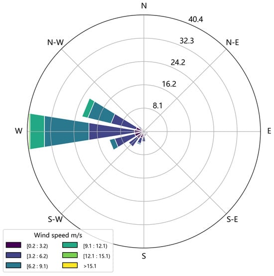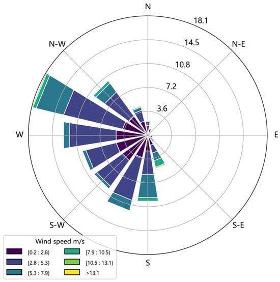 Since ammonia is mainly concentrated near the surface, each IASI observation is linked to wind data from the surface to the height of 50 m taken from MERRA-2. We applied the DE method to determine the NH3 emissions and lifetime over Golmud and Urumchi city. Figure 5 plots the wind roses from MERRA-2 wind field data in Urumchi during “ozone season” (May–September) from 2008 to 2023. The main wind direction is west in Urumchi during the study period, so the variation of NH3 distributions under west wind and calm conditions is used to estimate emissions.