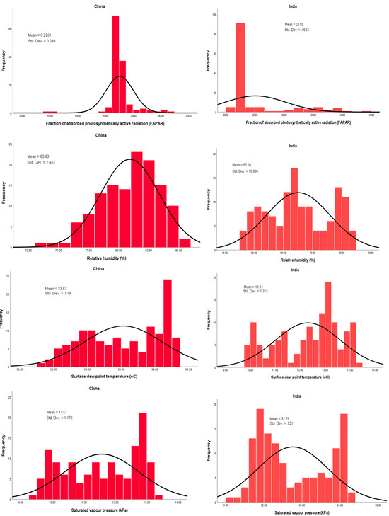 2 values for the SARIMA method were often lower than those for the CARIMA technique. The small differences between China and India observed in the outputs of the six machine learning algorithms can be attributed to the utilization of identical input configuration parameters. These parameters were specifically designed to capture the diverse geographic and climatic characteristics inherent to both nations. The superior performance of the MLP algorithm is evident from the distinct orange color in the plot’s legend, which represents its exceptional capabilities. This is further supported by