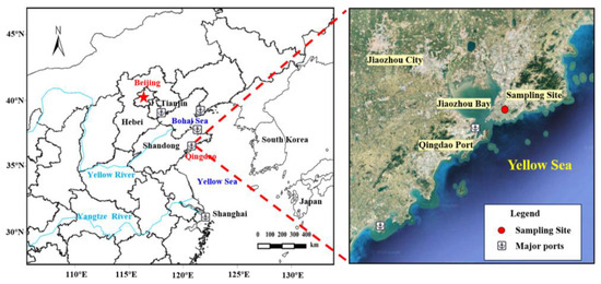 Particulate matter is still a major issue in North China in autumn/winter, while the sources of V and Ni in particulate matter in coastal cities are still unclear [31,37]. Qingdao is a crucial coastal megacity with a world-leading port in Northern China [31,38]. Even while facing the challenge of the COVID-19 pandemic, the foreign trade cargo throughput in the Port of Qingdao still steadily increased [39]. In this study, the trace metal elements in sub-micron particulate matter (PM1) were measured in Qingdao in Northern China in the autumn/winter seasons for four consecutive years (2018–2022), spanning different shipping policy implementation stages (DECA 1.0, DECA 2.0, IMO 2020, and Pre-OWG Beijing 2022). The potential transport and spatial distribution of trace metal elements were analyzed using the airflow backward trajectory method. This study also provides further insights into the future air quality in coastal cities in eastern China under the increasingly stringent emission control from land and marine sources.