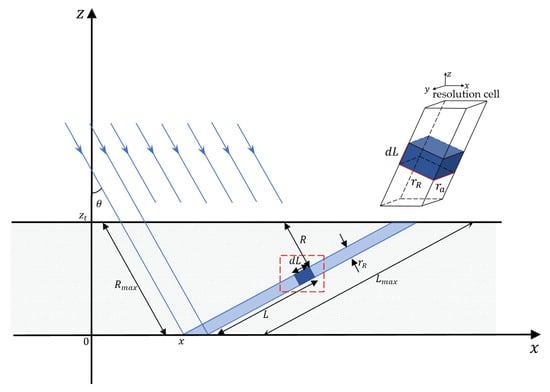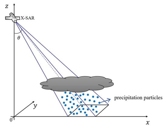 The X-SAR precipitation measurement model used to calculate the NRCS is shown in Figure 4. This model neglects the earth’s curvature, does not consider beam width, and simplifies spherical waves into plane waves for analysis.