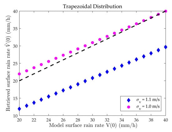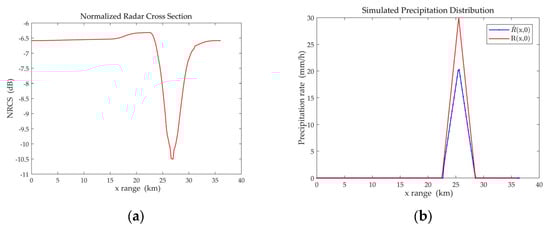 Trapezoidal distribution diagrams retrieved by RMM of = 1 m/s. (a) The normalized radar cross section; (b) Simulated precipitation distribution .