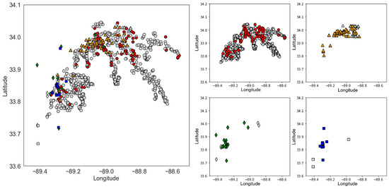 - Fuchs, B.R.; Bruning, E.C.; Rutledge, S.A.; Carey, L.D.; Krehbiel, P.R.; Rison, W. Climatological analyses of LMA data with an open-source lightning flash-clustering algorithm. J. Geophys. Res. Atmos. 2016, 121, 8625–8648. [Google Scholar] [CrossRef]
