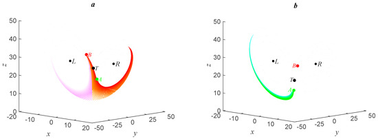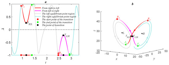 3.3.1. Linear Fitting of Trajectories in the Region of Left and Right Equilibrium Points