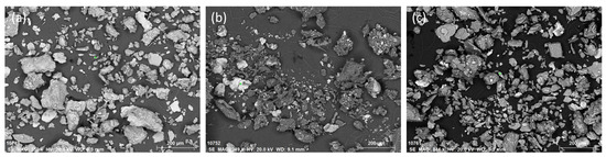 Compared to the Icelandic sediments, the sediments from Hornsund were much more mature, with rounded and abraded grains. The grain size was coarse, with a general range of variation from <5 μm to >200 μm and a different degree of sorting in different samples (Figure 4). While samples S1 and S3 consisted of loose sediments (Figure 4a,c), sample S2 (Figure 4b) showed the characteristics of a dark vegetated soil, rich in humus, with few residual quartz and alkali feldspar grains. The composition of the sediments (Table 3b) consisted of quartz, feldspar (K-feldspar and low-Ca plagioclase), chlorite, and mica (typically biotite). The accessory minerals were zircon (sediment samples S1 and S3), iron sulfide, phosphates (apatite and monazite in soil S3), and iron oxides (sediment sample S3). The mineralogical association was perfectly consistent, both in terms of typology and abundance of minerals, with the metamorphic rocks outcropping in the surroundings of the Polish Polar Station.