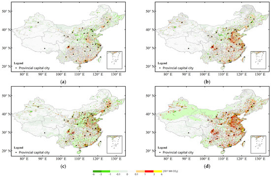 - Han, P.; Zeng, N.; Oda, T.; Lin, X.; Crippa, M.; Guan, D.; Janssens-Maenhout, G.; Ma, X.; Liu, Z.; Shan, Y.; et al. Evaluating China’s Fossil-Fuel CO2 Emissions from a Comprehensive Dataset of Nine Inventories. Atmos. Chem. Phys. 2020, 20, 11371–11385. [Google Scholar] [CrossRef]