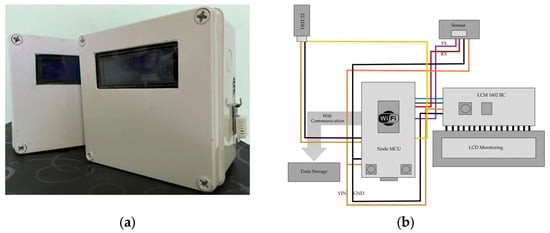 In this study, a LCS (Plantower Laser Dust Sensor PMS7003) was tested at several monitoring sites, from December 2021 to April 2022. The Plantower Laser Dust Sensor PMS7003 is a low-cost, commercially available sensor that costs between THB 800–1100 (USD 25–35). The advantages of this sensor are that it can be controlled remotely via a Raspberry Pi and is small enough to fit into a mobile or wearable enclosure, while previous research has shown that, compared with other sensors such as Plantower PMS5003 and Alphasense OPC-N2, PMS7003 tends to show a significant correlation with the reference instrument and good reproducibility [47,48,62]. Therefore, our study employed PMS7003. To assess the performance of our LCS for the detection of the PM10, PM2.5, and PM1.0 concentrations, the RH and temperature, and various test data, were recorded. All the devices used were obtained from an electronics store and collocated; they included the Plantower laser dust sensor PMS7003 (a particle detector that uses the light scattering principle), a NodeMCU ESP8266 (V2) Wifi board, a fan (DC 12V, 8 cm), a liquid crystal monitor display (I2C LCD2004A LCD (Blue Screen), a 20 × 4 LCD with back-light), a power switching supply (DC 12V, 12 × 12 mm), a USB adapter (5V, 1A), a micro USB (B) programming cable (30 cm), a digital temperature and RH sensor (DHT22 AM3202), plastic cover boxes, and a jumper (F2F). The data gathered were reported via the Internet of Things (IoT) and was periodically uploaded to remote cloud storage such as Thingspeak. A numerical and graphical value near the real-time monitor was automatically obtained.