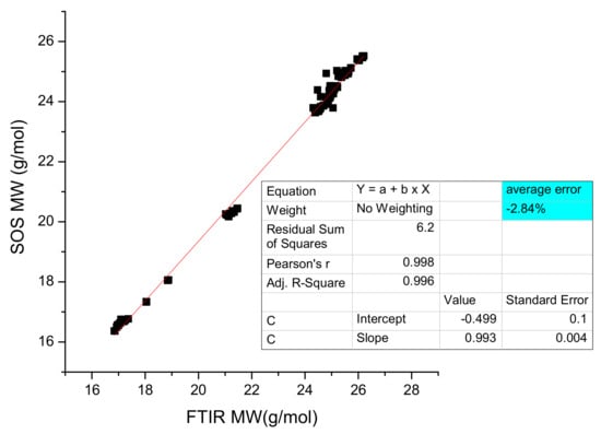 | Test No. | MW from FTIR (g/mol) | SOS MW (g/mol) | Delta MW (g/mol) | Error (%) |