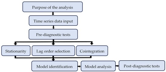 STATA 17 and EViews 13 were used to run the VARX model to complement estimations. The flow of the research is shown in Figure 2.