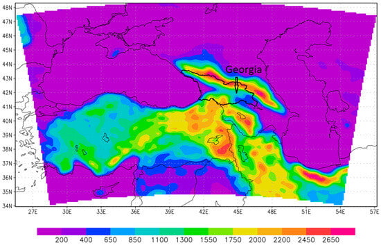 Georgia is a country in the South Caucasus region. The Black Sea borders it to the west, the Greater Caucasus Range to the north, and the Lesser Caucasus to the south. The Greater Caucasus is connected with the Lesser Caucasus by the Likhi range, which divides the country into two physical–geographical areas: western Georgia and eastern Georgia. Humid subtropical climatic conditions characterize the western part of Georgia, while eastern Georgia is characterized by transitional from humid to dry subtropical climatic conditions [1]. The direction of the main ranges of the Caucasus greatly influences the climate and atmospheric circulation in the lower layers of the troposphere in the territory of Georgia, which practically specifies the trajectories of the movements of air masses. In particular, the penetration of air masses from western [2] and eastern directions prevails here. Bilateral penetration of air masses in the territory of Georgia is very rare [1]. The Greater Caucasus typically acts as a formidable obstacle for the air masses coming from the north, while the air masses coming from the south are attenuated by the Lesser Caucasus, allowing them to disperse more freely, particularly in the higher atmospheric layers [3].