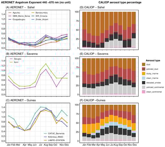 3.3. Angström Exponent and CALIOP Aerosol Type