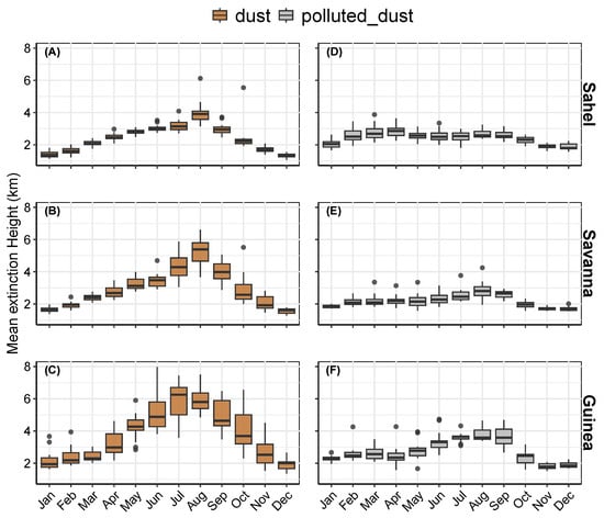 - Knippertz, P.; Todd, M. The central west Saharan dust hot spot and its relation to African easterly waves and extratropical disturbances. Atmosphere 2010, 115, D12117. [Google Scholar] [CrossRef]