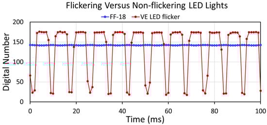 Flickering versus non-flickering LED temporal profiles.