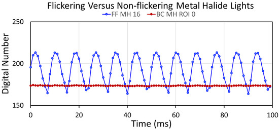 Temporal profiles for flickering and non-flickering metal halide bulbs.