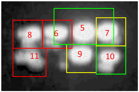 With the six-stop ND filter, the MP4 processing software identified seven lighting clusters inside the area where the higher transmissivity collections only found a single saturated lighting feature. Number 9 appears to be a single luminaire. Numbers 6, 7, 8, 10, and 11 appear to have more than one luminaire. Number 5 straddles three lighting clusters.